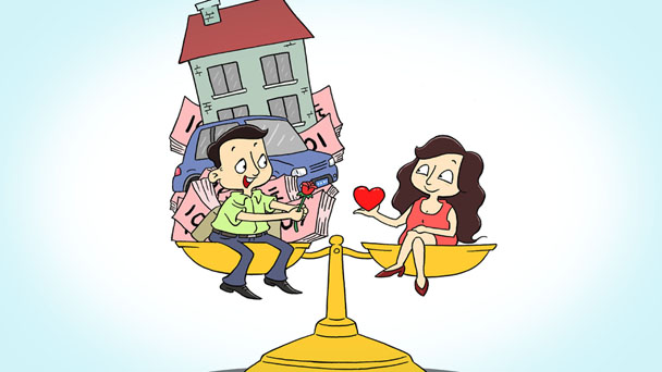 在現代的擇偶條件中,金錢所占的比重越來越大,而愛情則變得可有可無。