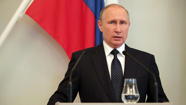 7月27日,在芬蘭薩翁林納,俄羅斯總統普京出席新聞發布會。