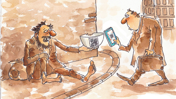 進(jìn)入移動(dòng)支付時(shí)代,連乞丐都用二維碼了。