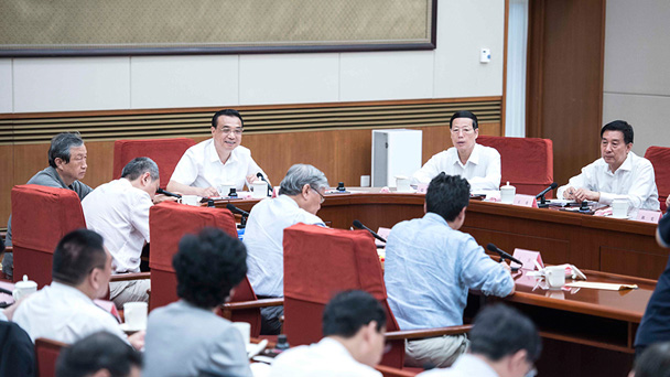 7月6日,中共中央政治局常委、國務院總理李克強主持召開經濟形勢專家和企業家座談會。中共中央政治局常委、國務院副總理張高麗出席。新華社記者 李濤 攝