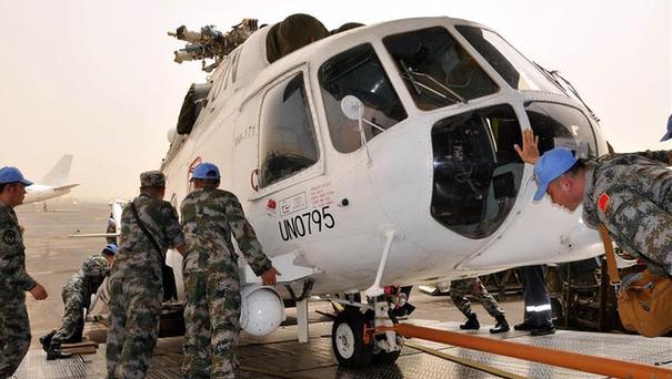 中國(guó)首支維和直升機(jī)分隊(duì)首批兩架直升機(jī)等相關(guān)裝備11日抵達(dá)蘇丹首都喀土穆,短暫休整、組裝后將飛赴達(dá)爾富爾任務(wù)區(qū)。