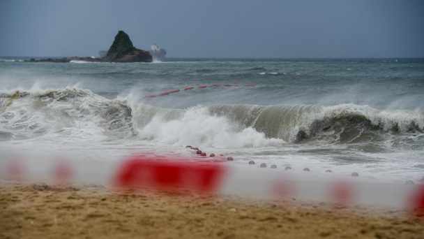 6月12日,深圳大鵬灣畔的大梅沙海濱公園因臺(tái)風(fēng)關(guān)閉,沙灘上空無(wú)一人。