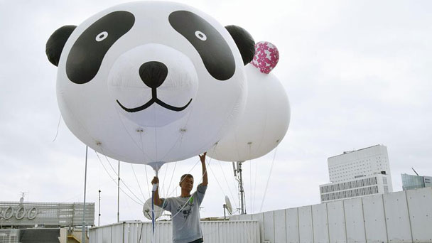 日本民眾放飛氣球 慶祝旅日大熊貓產(chǎn)崽