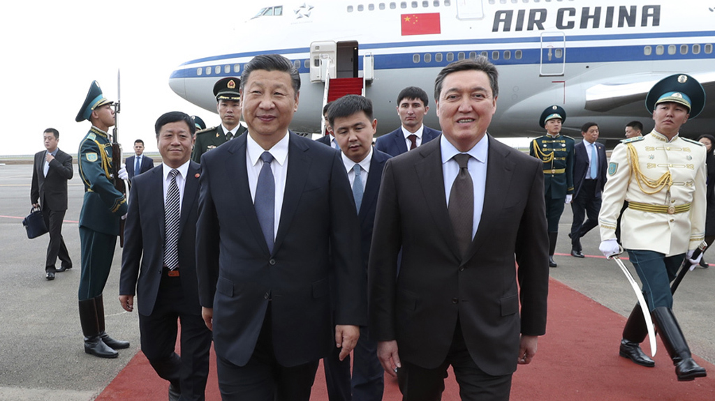 6月7日,國家主席習近平乘專機抵達哈薩克斯坦共和國首都阿斯塔納,開始對哈薩克斯坦共和國進行國事訪問并出席上海合作組織成員國元首理事會第十七次會議和阿斯塔納專項世博會開幕式。