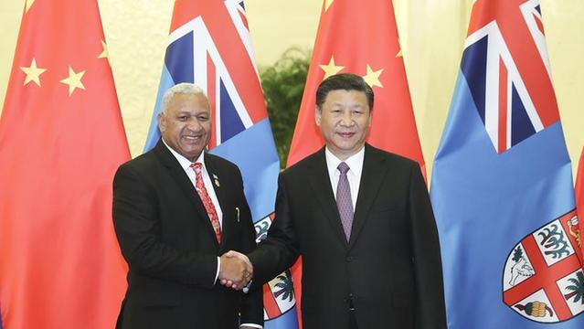 5月16日,國家主席習(xí)近平在北京人民大會(huì)堂會(huì)見來華出席“一帶一路”國際合作高峰論壇的斐濟(jì)總理姆拜尼馬拉馬。