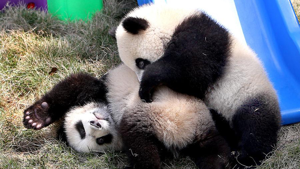 首對在中國大熊貓保護研究中心上海基地誕生的大熊貓龍鳳胎寶寶終于有了自己的名字——哥哥叫“月月”,妹妹叫“半半”?!?/p>