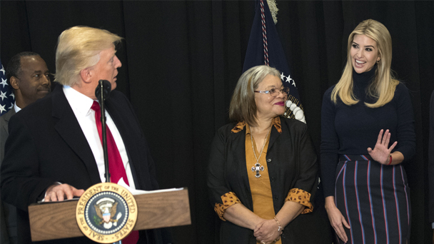 當地時間21日,美國總統唐納德?特朗普前往位于華盛頓的非洲裔美國人歷史與文化國家博物館參觀,同行的還有他的大女兒伊萬卡。