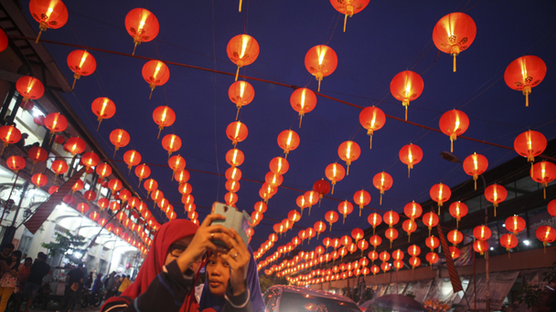 當(dāng)?shù)貢r(shí)間2017年1月21日,在位于印尼蘇拉卡爾塔亦稱“梭羅”的唐人街,街道中已經(jīng)布置好數(shù)百個(gè)紅燈籠,準(zhǔn)備迎接中國農(nóng)歷新年。