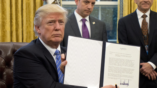據(jù)英國廣播公司(BBC)1月24日?qǐng)?bào)道,美國總統(tǒng)特朗普23日簽署了上任后的第一份行政命令,正式宣布美國退出跨太平洋戰(zhàn)略經(jīng)濟(jì)伙伴協(xié)定(TPP)。