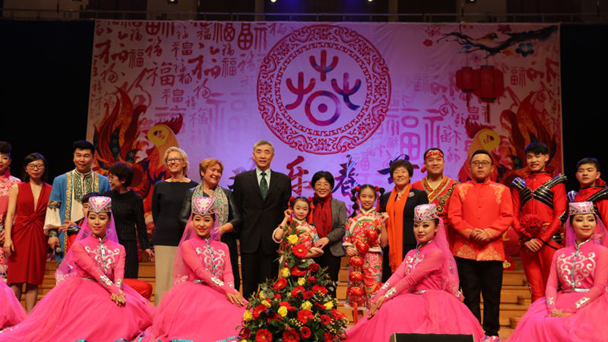1月24日晚,中歐觀眾在布魯塞爾欣賞了由銀川藝術(shù)劇院帶來的具有濃郁民族風(fēng)情的歌舞、器樂、雜技等表演,感知喜慶的中國年味。