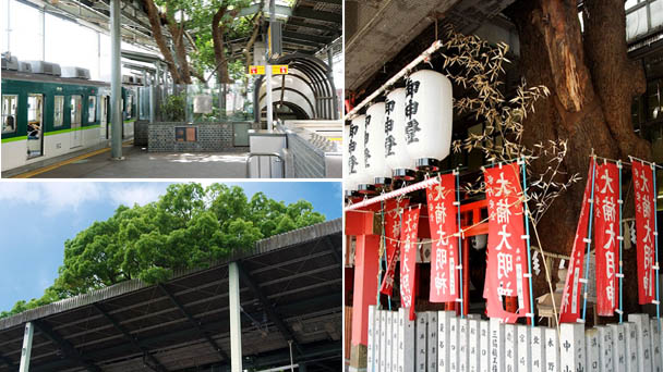 日本大阪的東北部,有座名為茅島的火車站證明了人和自然是可以和諧共處的。火車站里有一顆巨大的樟樹,從站臺(tái)上方的洞里延伸出去。日本官方認(rèn)為,這棵樹的壽命已經(jīng)超過700歲,受到人們的愛戴。