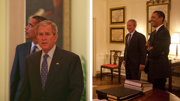 2008年11月10日,美國新當選總統奧巴馬與前任總統喬治·沃克·布什在白宮舉行會面。隨著奧巴馬總統任期即將結束。當時他首訪問白宮的情景,值得回顧。
