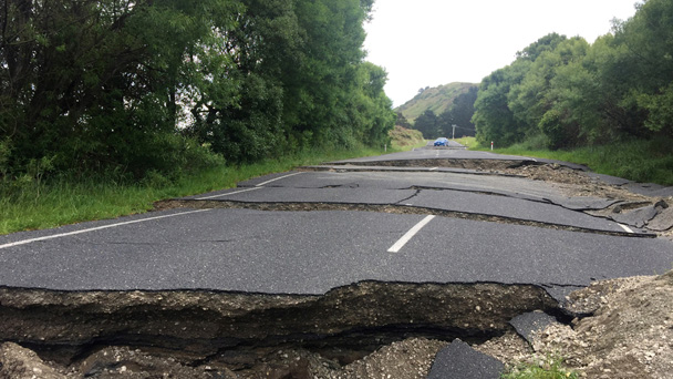 直擊新西蘭強震現場:道路撕裂、一片狼藉