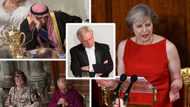 14日晚,英國倫敦金融城市長晚宴舉行,英國首相特雷莎·梅在晚宴上發表講話。但是,在她講話期間,包括脫歐大臣戴維·戴維斯在內的許多到場賓客都昏昏欲睡。