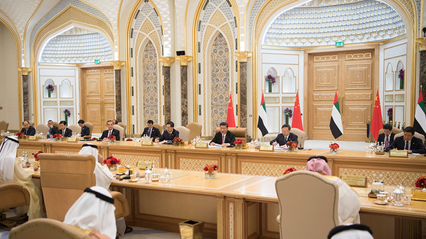 習(xí)近平同阿聯(lián)酋副總統(tǒng)兼總理穆罕默德、阿布扎比王儲穆罕默德舉行會談