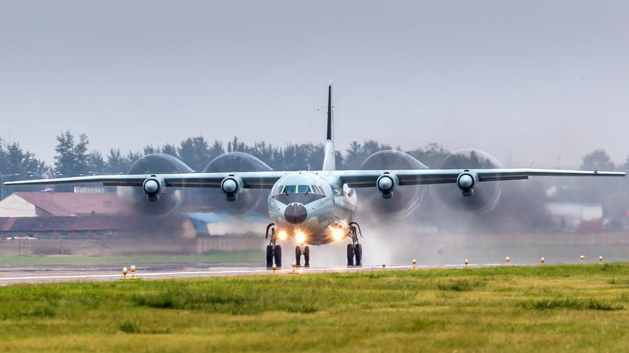7月20日,在俄羅斯梁贊州,一架運-9運輸機滑向嘉吉列沃機場停機位。7月20日,在俄羅斯梁贊州,一架殲轟-7A殲擊轟炸機抵達嘉吉列沃機場。7月20日,在俄羅斯梁贊州,一架殲轟-7A殲擊轟炸機抵達嘉吉列沃機場。