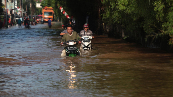 當(dāng)?shù)貢r間8月20日,印尼首都雅加達(dá)遭遇暴雨后引發(fā)洪水,街道被淹沒,民眾出行成難題。