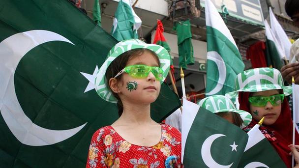 8月13日,在巴基斯坦西北部城市白沙瓦,幾名兒童手持國旗。巴基斯坦將于8月14日慶祝獨立日。 8月13日,在巴基斯坦西北部城市白沙瓦,幾名兒童挑選獨立日紀念品。新華社發(艾哈邁德·西迪克攝)