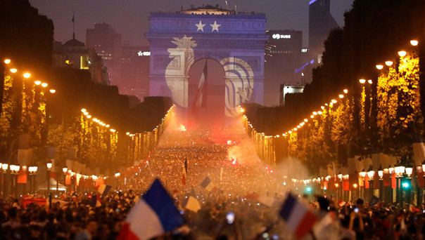 7月15日,在莫斯科進(jìn)行的2018俄羅斯世界杯足球賽決賽中,法國隊(duì)以4比2戰(zhàn)勝克羅地亞隊(duì),繼1998年后再奪世界杯冠軍。球隊(duì)獲勝后,法國舉國上下一片歡騰,球迷狂歡慶賀奪冠。
