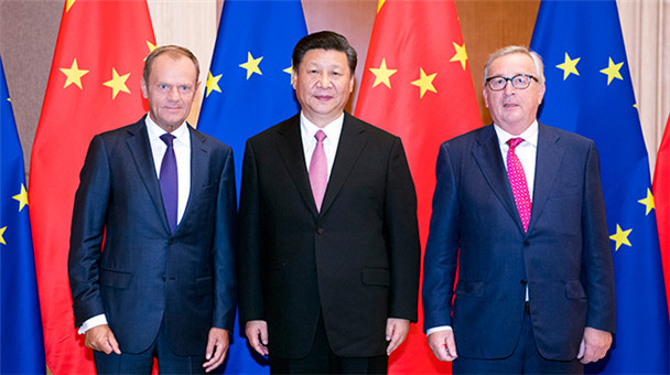 7月16日,國家主席習(xí)近平在北京釣魚臺國賓館會(huì)見來華出席第二十次中國歐盟領(lǐng)導(dǎo)人會(huì)晤的歐洲理事會(huì)主席圖斯克和歐盟委員會(huì)主席容克。