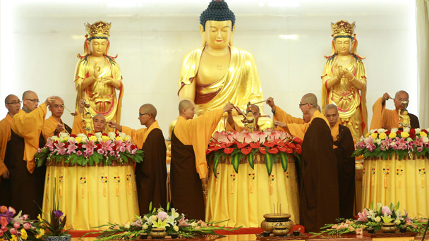 中國佛教協(xié)會2016佛誕節(jié)慶祝活動5月14日上午在北京龍泉寺隆重舉行。與會的佛教高僧以及佛教信眾進(jìn)行了莊重的浴佛儀式,并互祝“佛誕吉祥”。