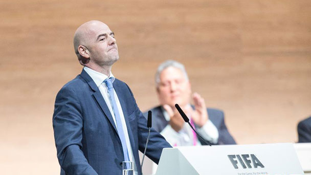 當日,歐洲足聯秘書長因凡蒂諾在于蘇黎世舉行的國際足聯特別代表大會上,經過兩輪投票最終擊敗三名對手,當選新的國際足聯主席。當日,歐洲足聯秘書長因凡蒂諾在于蘇黎世舉行的國際足聯特別代表大會上,經過兩輪投票最終擊敗三名對手,當選新的國際足聯主席。