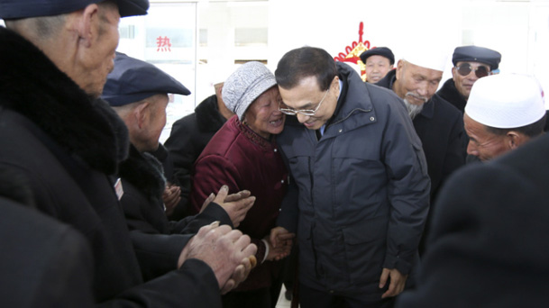李克強2月1日來到寧夏固原市原州區(qū)中心敬老院,給老人們帶來年貨大禮包。他說,今天是農(nóng)歷小年,在春節(jié)這個中華民族重要的節(jié)日里,我們不能忘記老人。我代表黨中央、國務院給你們帶來禮物,最重要的是這兩個字——說完他親手把“?!薄皦邸睊旒煸趬ι稀?/p>
