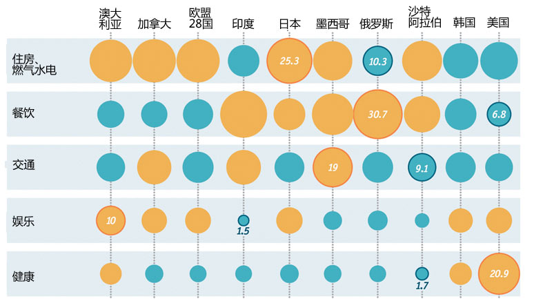 圖解:各國(guó)居民如何分配自己的家庭開(kāi)支?