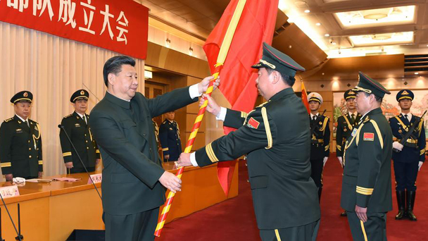 原標題:習近平向中國人民解放軍陸軍火箭軍戰略支援部隊授予軍旗并致訓詞 2015年12月31日,中國人民解放軍陸軍領導機構、中國人民解放軍火箭軍、中國人民解放軍戰略支援部隊成立大會在北京八一大樓隆重舉行。