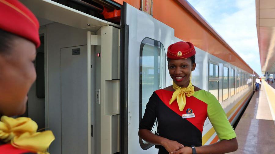 2017年5月31日,連接肯尼亞東部港口城市蒙巴薩與首都內羅畢的蒙內鐵路正式開通。新華社記者王騰 攝  6月1日,駕駛員駕駛列車駛出肯尼亞蒙內鐵路蒙巴薩站。新華社記者王騰 攝  6月2日,旅客在肯尼亞蒙內鐵路蒙巴薩站檢票登車。