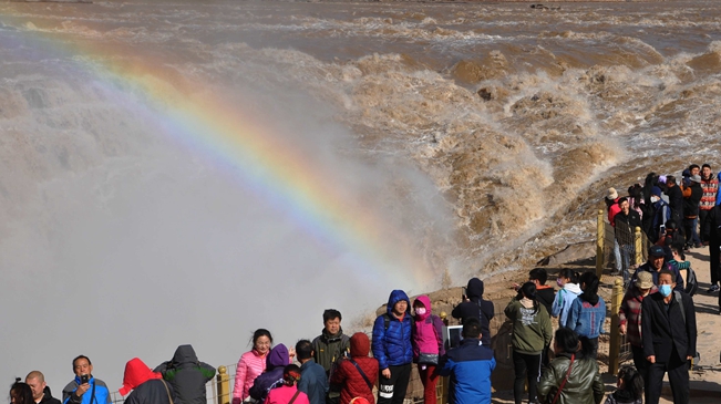 4月6日,眾多游客在山西吉縣黃河壺口瀑布景區游覽。新華社發 呂桂明 攝  4月6日,游客乘船在江蘇揚州瘦西湖景區內游覽。新華社發 劉建華 攝  4月6日,人們在位于江蘇無錫的江南大學牡丹園內踏青賞花。