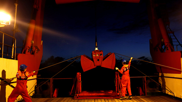“科學(xué)”號(hào)考察船的電視抓斗進(jìn)行深海采樣