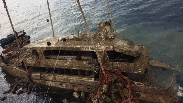 當(dāng)?shù)貢r(shí)間11月17日下午,泰國(guó)有關(guān)方面克服困難,將今年7月5日普吉游船傾覆事故中沉沒的“鳳凰”號(hào)打撈出水。