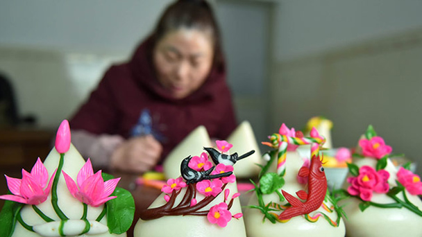 春節臨近,各地的面食制作藝人忙著趕制花糕、花饃、堆花團子等傳統面食,以供應年節市場。
