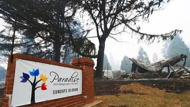 這是11月14日在美國加利福尼亞州天堂鎮拍攝的山火過后的景象。美國西部加利福尼亞州比尤特縣治安官辦公室在14日晚的災情通氣會上證實,“坎普”山火造成的死亡人數升至56人。新華社記者 李穎 攝 11月14日,在美國加利福尼亞州天堂鎮,籃球架倒在地上。