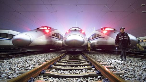 動車組停靠在武漢動車段的存車線上等待檢修、保溫作業。