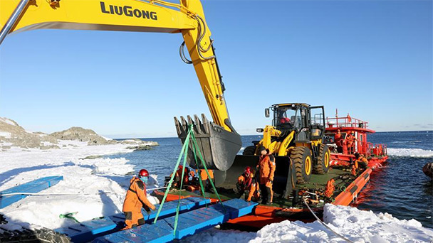 中國南極新建站大型工程裝備運上恩克斯堡島