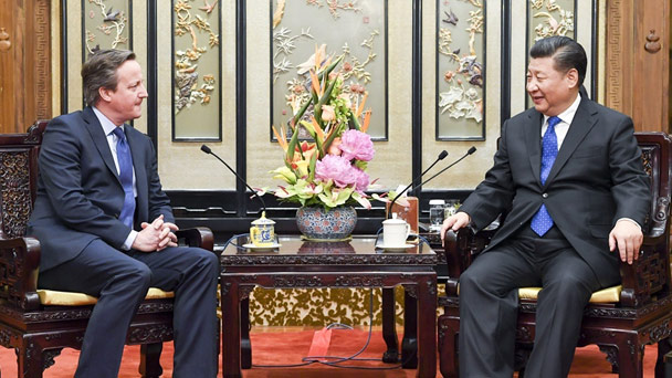 1月11日,國家主席習近平在北京釣魚臺國賓館會見英國前首相卡梅倫。