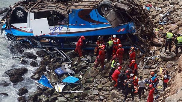 秘魯一長途汽車墜入山谷造成至少25人死亡