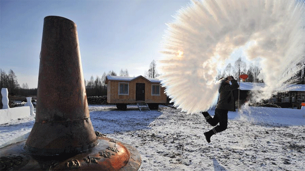 這是12月23日在內(nèi)蒙古根河市敖魯古雅鄂溫克民族鄉(xiāng)拍攝的馴鹿雕塑,遠(yuǎn)處是撮羅子(樹皮搭建的帳篷)造型建筑。根河市素稱“中國冷極”,當(dāng)?shù)乩帽┵Y源,并結(jié)合獨(dú)特的鄂溫克民族風(fēng)情,打造冬季旅游項目,為游客帶來不一樣的冰雪體驗。