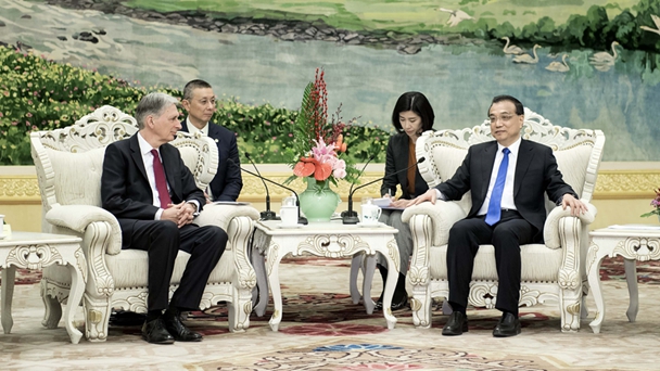 12月15日,國務院總理李克強在北京人民大會堂會見來華出席第九次中英經濟財金對話的英國財政大臣哈蒙德。 新華社記者 李濤 攝