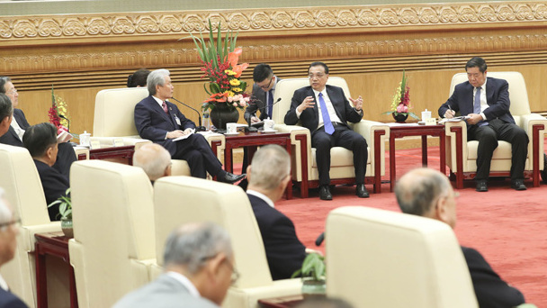 國(guó)務(wù)院總理李克強(qiáng)11月21日下午在人民大會(huì)堂會(huì)見日本經(jīng)濟(jì)團(tuán)體聯(lián)合會(huì)會(huì)長(zhǎng)榊原定征、日中經(jīng)濟(jì)協(xié)會(huì)會(huì)長(zhǎng)宗岡正二、日本商工會(huì)議所會(huì)長(zhǎng)三村明夫率領(lǐng)的日本經(jīng)濟(jì)界代表訪華團(tuán)并同他們座談。