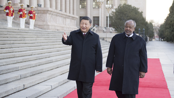 11月23日,國(guó)家主席習(xí)近平在北京人民大會(huì)堂同來華進(jìn)行國(guó)事訪問的吉布提總統(tǒng)蓋萊舉行會(huì)談。