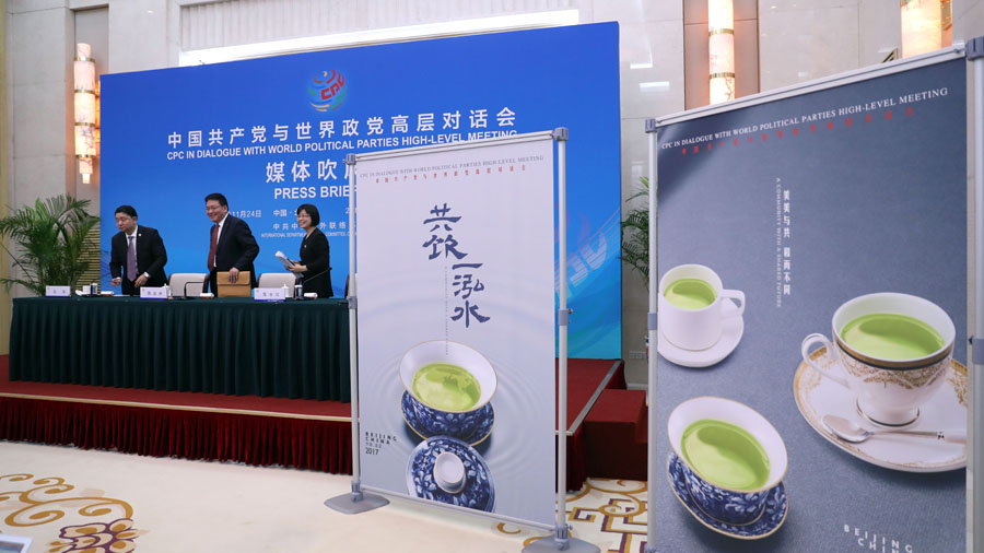 2017年11月24日,中國(guó)共產(chǎn)黨與世界政黨高層對(duì)話會(huì)海報(bào)《共飲一泓水》和《美美與共、和而不同》正式發(fā)布。