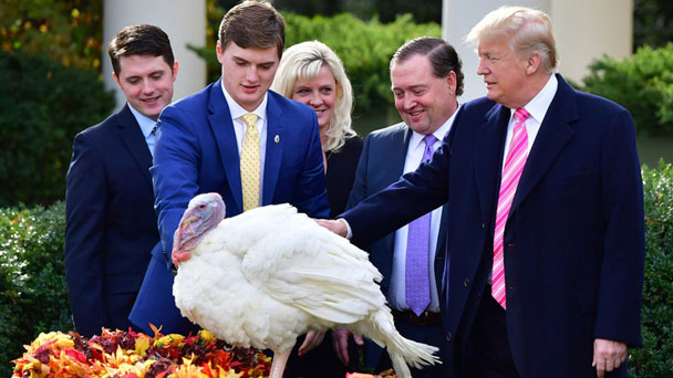 當(dāng)?shù)貢r(shí)間11月21日,美國華盛頓的白宮舉行一年一度的感恩節(jié)火雞赦免儀式,總統(tǒng)特朗普在儀式上赦免了一只名叫“鼓槌(Drumstick)”的火雞。