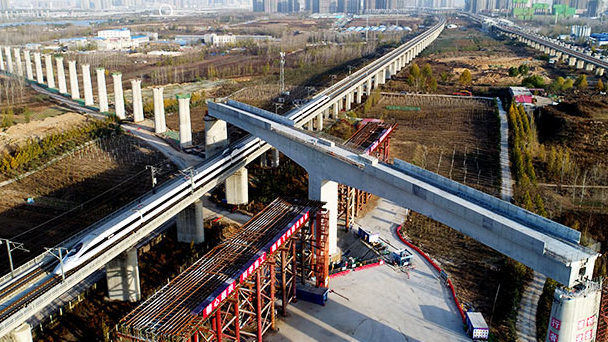 11月22日,由中交二航局承建的鄭(鄭州)萬(萬州)高鐵萬噸T構(gòu)橋在鄭州市南郊進(jìn)行“高空轉(zhuǎn)體”,與建設(shè)中的鄭萬高鐵線路精準(zhǔn)對接,實(shí)現(xiàn)對京廣高鐵的成功跨越。