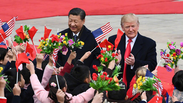 11月9日,國家主席習近平在人民大會堂同美國總統(tǒng)特朗普舉行會談。會談前,習近平在人民大會堂東門外廣場為特朗普舉行歡迎儀式。