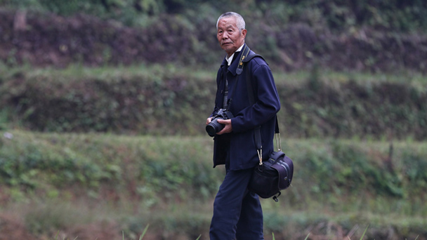 78歲的張希才老人是貴州省雷山縣西江鎮(zhèn)黃里村人,在當(dāng)?shù)乜墒敲恕D為11月7日,張希才老人胸前掛著相機(jī)走在采訪的路上。