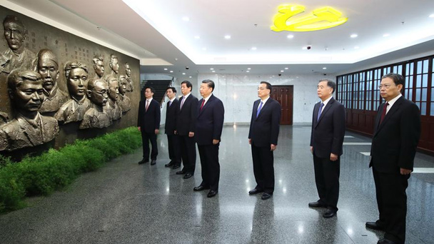 習(xí)近平和中央政治局常委瞻仰中共一大會址
