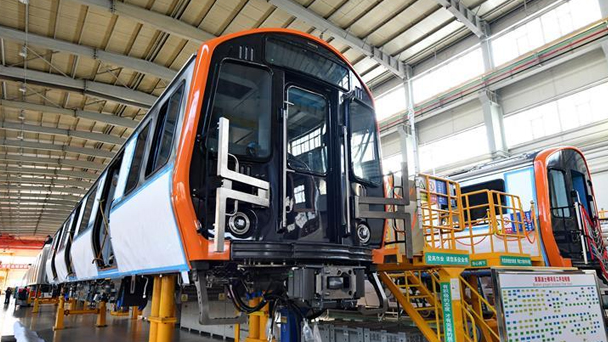 這是在中車長客客車制造中心裝配一車間拍攝的波士頓地鐵列車(10月31日攝)。新華社記者 張楠 攝  10月31日,在中車長客客車制造中心裝配一車間,工人調(diào)整波士頓地鐵列車上配備的折疊輪椅。